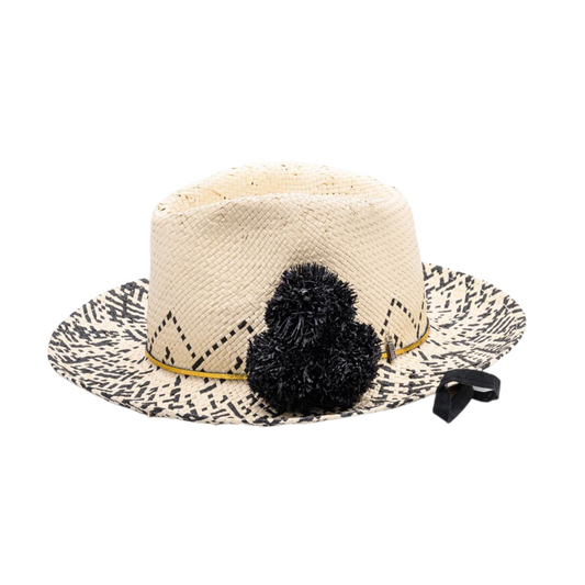 Summer LOVIN', Handwoven Raffia Fibre and Genuine Black Metallic Leather Hat - UPF 50+
