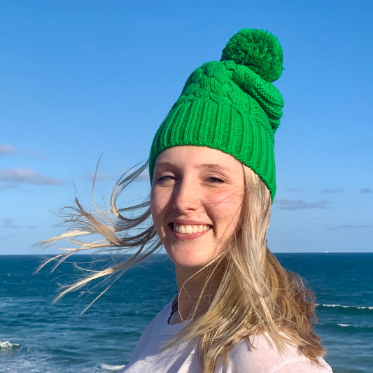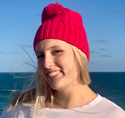 UP for ANYTHING 100% Pure Merino Wool Jumbo Cable & Fancy Rib Beanie with detachable Merino Wool Pom Pom, Lippy
