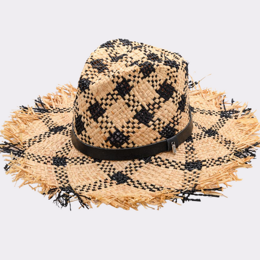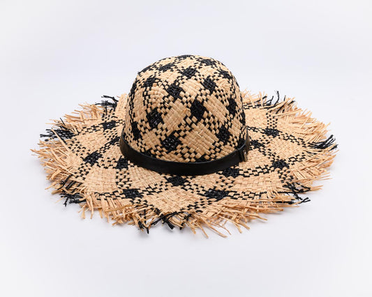 DREAM BIG, Handwoven Raffia Fibre and Freshwater Pearls Hat - UPF 50+, BLACK