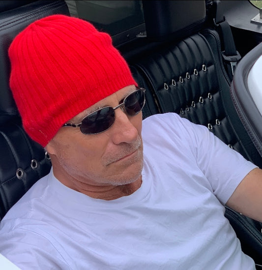 BROOME 100% Pure Cashmere Baby Rib Beanie, Wild Cherry