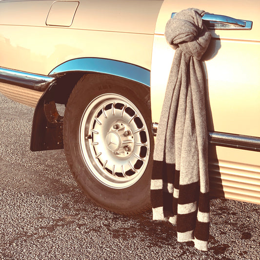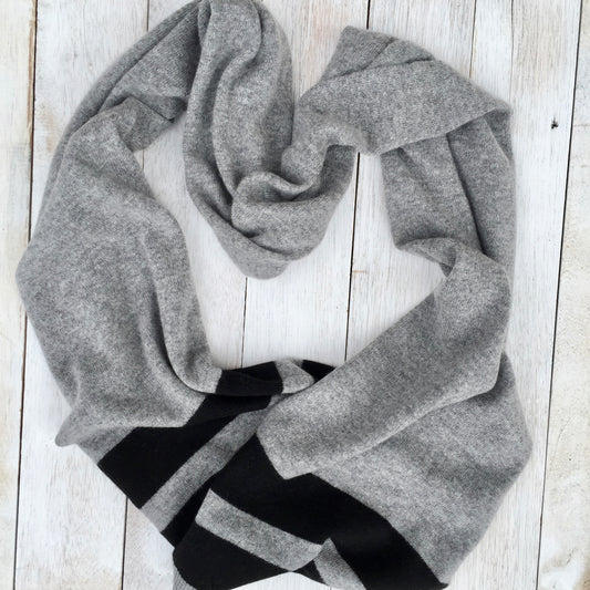 CROSS the line 100% Pure Cashmere Double Stripe Scarf, Dove Grey