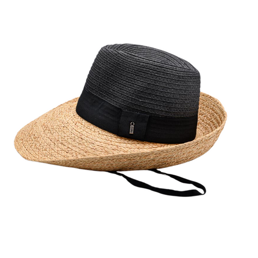 FOLLOW MY LEAD, Handwoven Fine Paper Ribbon Hat - UPF 50+, BLACK