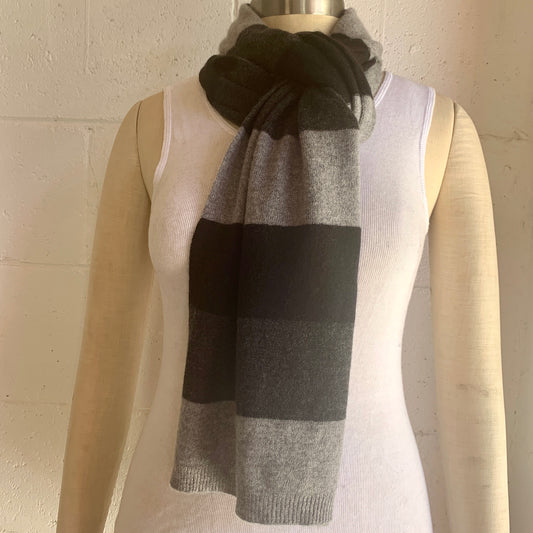 EARNT YOUR Stripes 100% Pure Cashmere Tonal Trio Stripe Scarf, Pressed Metal Grey