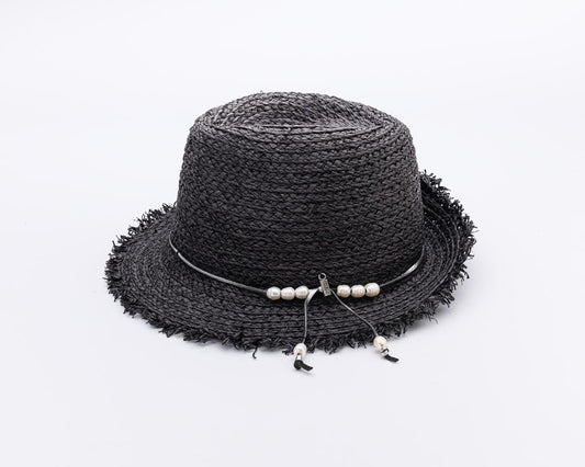 Girly PEARLY, Raffia Fibre with Handcut Fringing and Fresh Water Pearls Hat