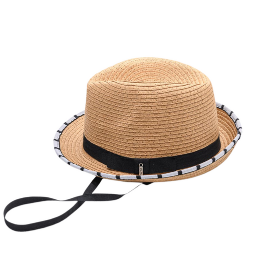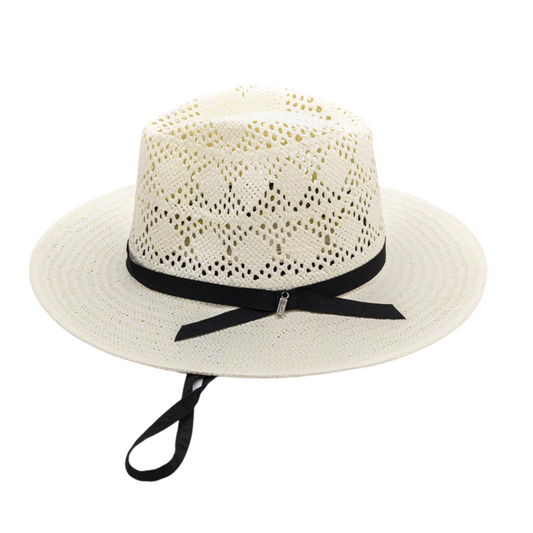 Not always BLACK and WHITE, Handwoven Paper Ribbon Hat - UPF 50+