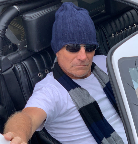 BROOME 100% Pure Cashmere Baby Rib Beanie, French Navy